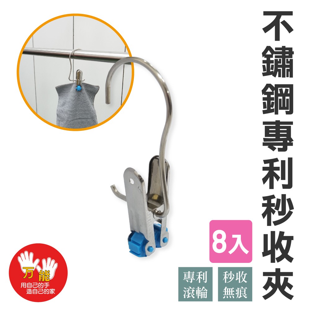 雙手萬能 不鏽鋼專利秒收夾8入(衣夾/掛勾夾/萬用夾/菜單夾) 廠商直送