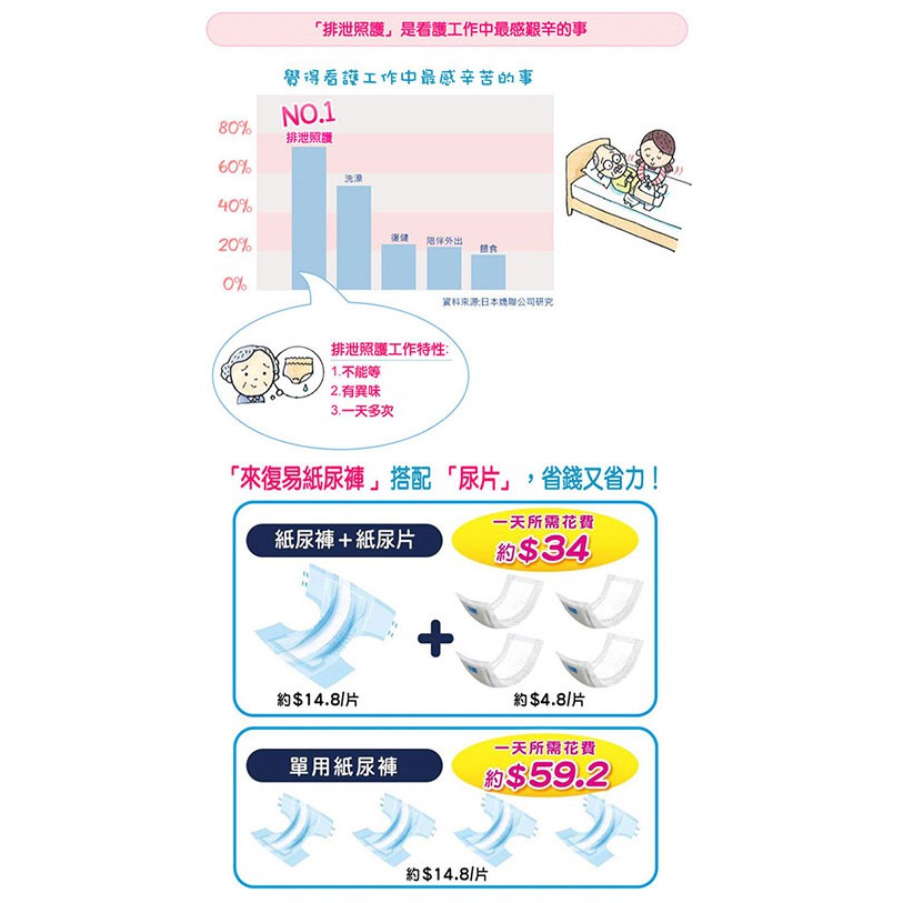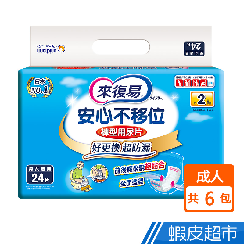 來復易 安心不移位褲型用尿片(24片x6包/箱)(搭配成人紙尿褲) 現貨 蝦皮直送