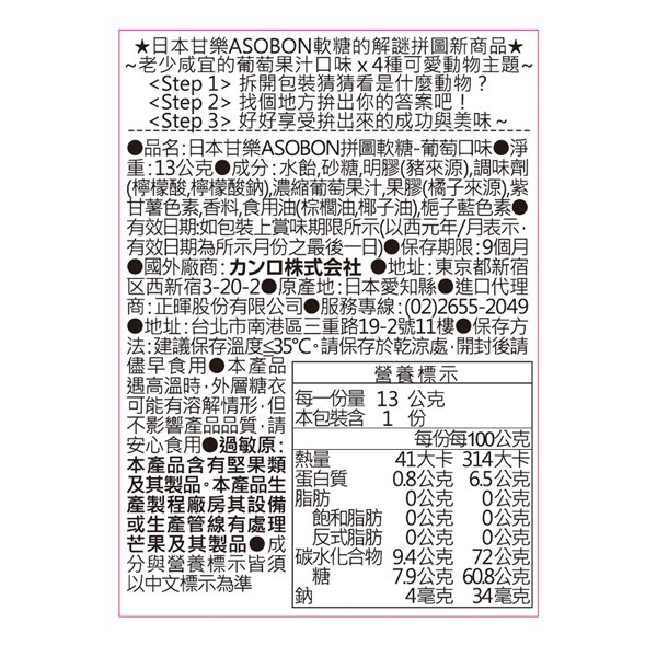 日本甘樂 Kanro ASOBON拼圖軟糖 葡萄口味 多入組 水果 軟糖 拼圖 季節限定 現貨 蝦皮直送