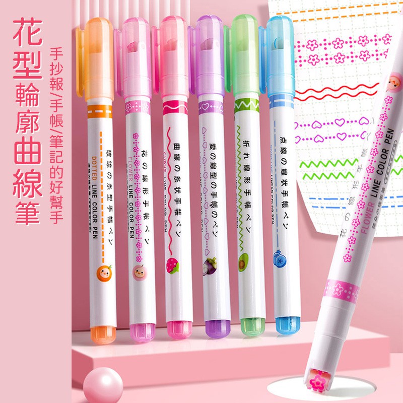 花型輪廓速乾手帳裝飾筆超值2入手帳裝飾筆裝飾輪廓筆花型輪廓曲線筆曲線線型筆手帳筆雙線筆P1901D-1 現貨 廠商直送