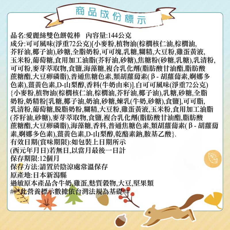日本 北日本 BOURBON 愛麗絲雙色餅乾棒 (144g) 現貨 蝦皮直送