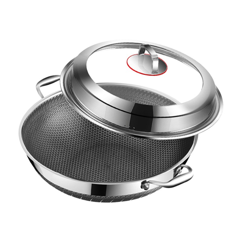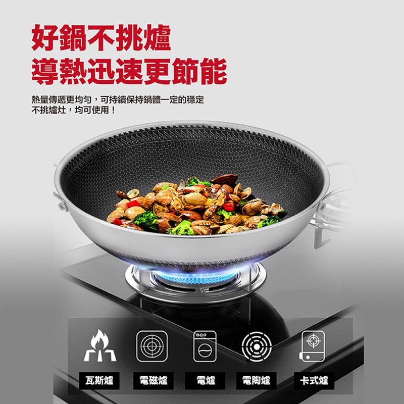 KNF康尼菲 加大加高316雙面蜂巢不沾炒鍋38cm 附鍋蓋 炒鍋 316不鏽鋼 QL1602D-1 現貨 廠商直送