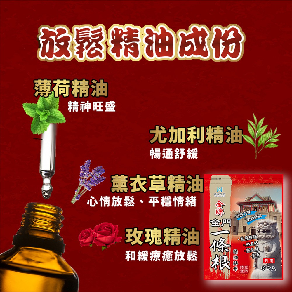 薇爾艾伯 金牌 金門一條根精油貼布 8片/袋 含葡萄糖胺 MSM 薄荷 尤加利 薰衣草精油 現貨 蝦皮直送