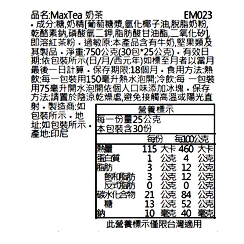 印尼 MAX TEA TARIKK 奶茶 X2袋 現貨 廠商直送