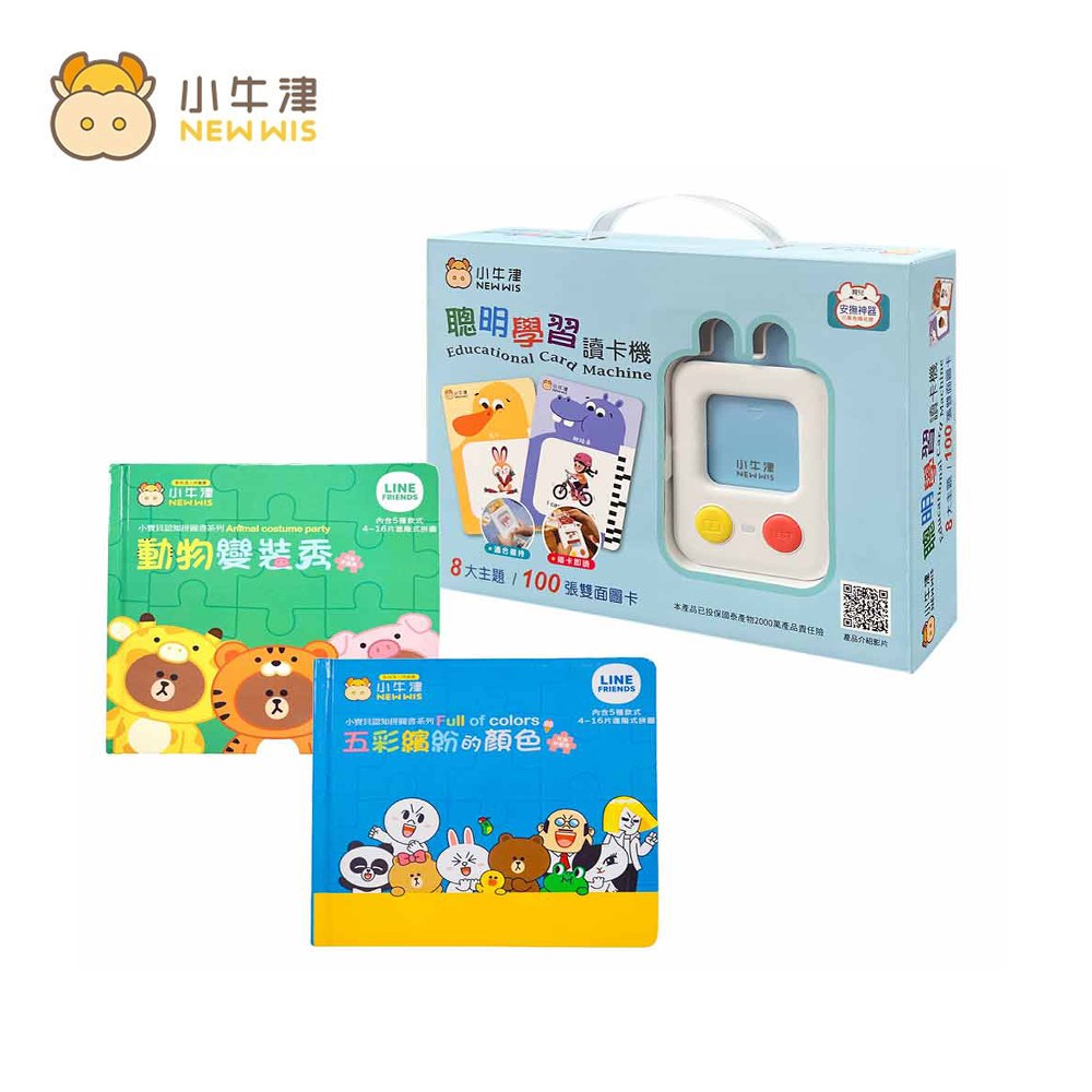小牛津 聰明學習讀卡機+LINE FRIENDS小寶貝認知拼圖書套組-認知動物/顏色(共2本) 廠商直送