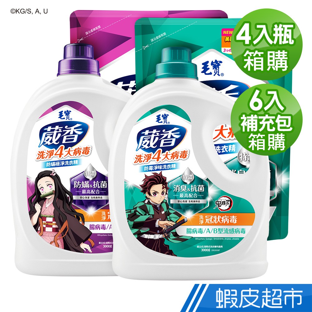 毛寶葳香抗菌洗衣精-罐裝3000gX4入箱購/補充包2000gX6入箱購 (防蟎極淨/防霉淨味) 現貨 蝦皮直送