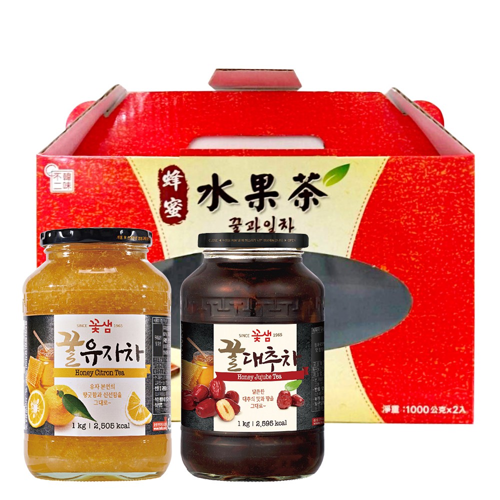 韓味不二 花泉蜂蜜傳統禮盒(柚子/蘋果/檸檬/紅棗/薑母)任選1kgx2瓶 廠商直送