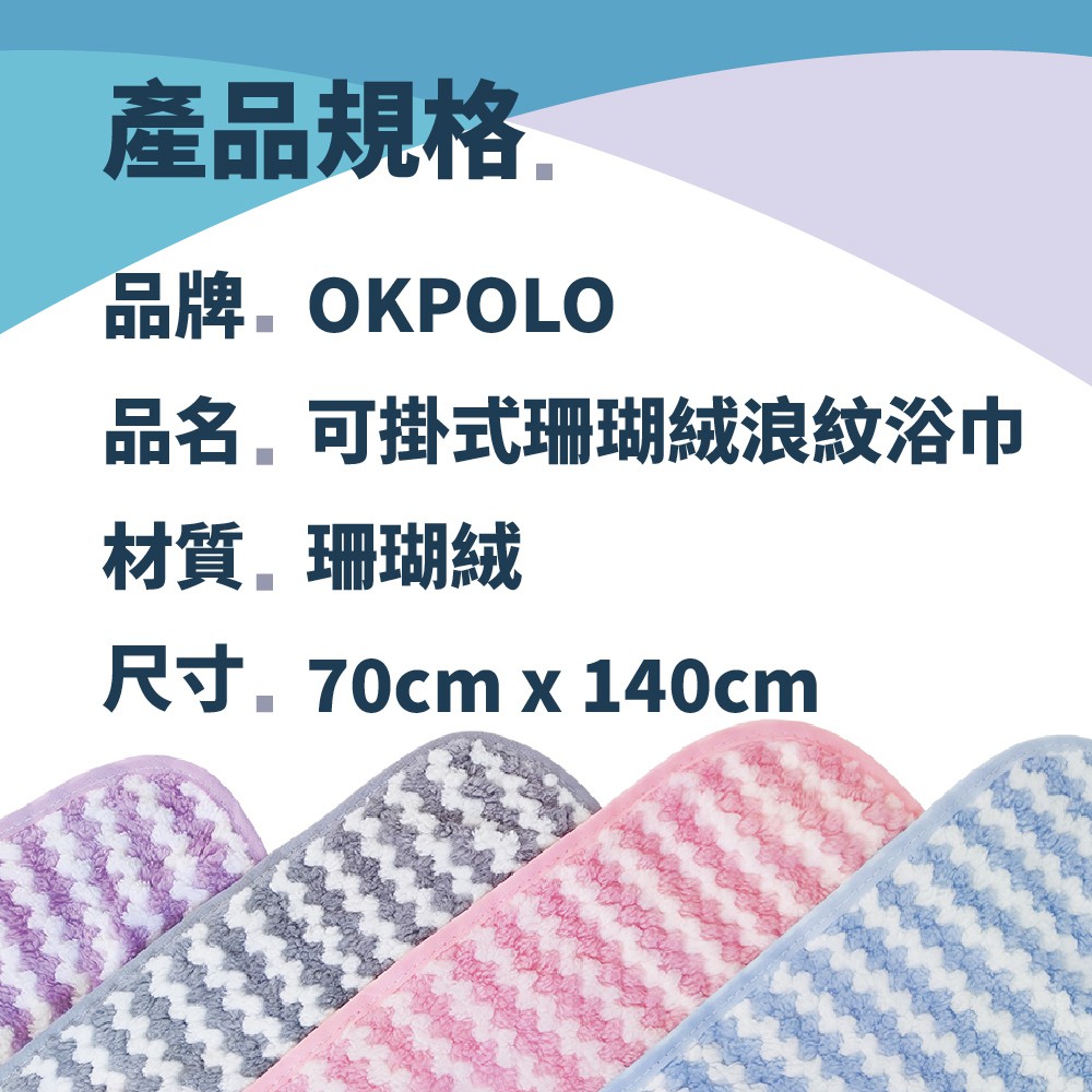OKPOLO 可掛式珊瑚絨浪紋浴巾 3條/組 80x90cm 親膚舒適 綜合出貨 現貨 廠商直送