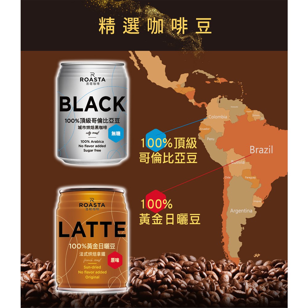 維他露 ROASTA咖啡(洛塔咖啡) 無糖黑咖啡/咖啡拿鐵 230ml/240mlx6入/組 現貨 蝦皮直送
