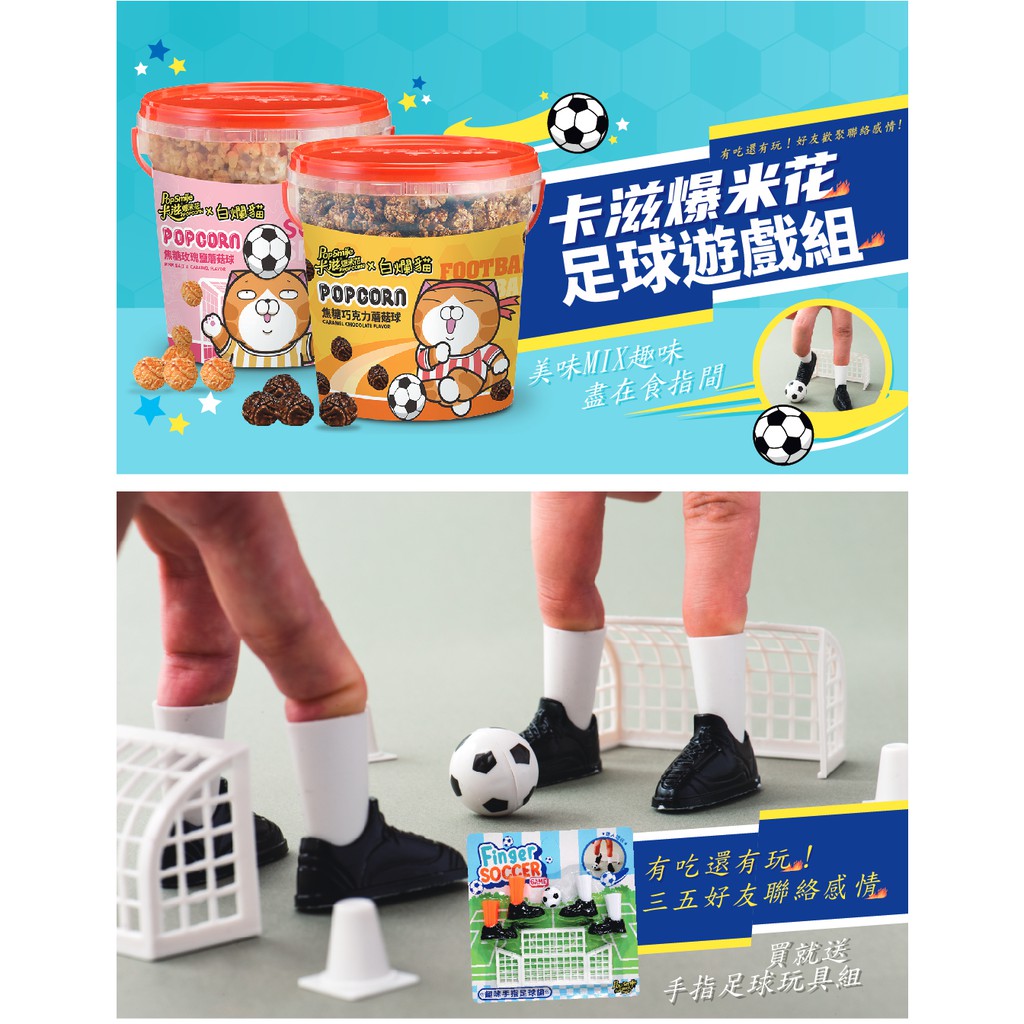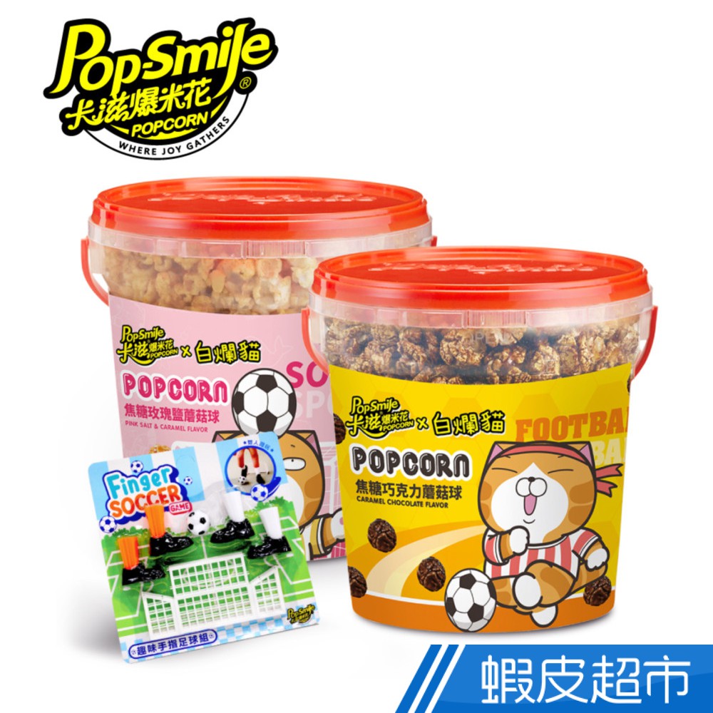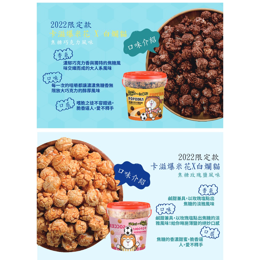 卡滋桶裝爆米花 期間限定-白爛貓足球遊樂超值組-焦糖巧克力+焦糖玫瑰鹽 (蘑菇球) 150gX2桶 現貨 蝦皮直送