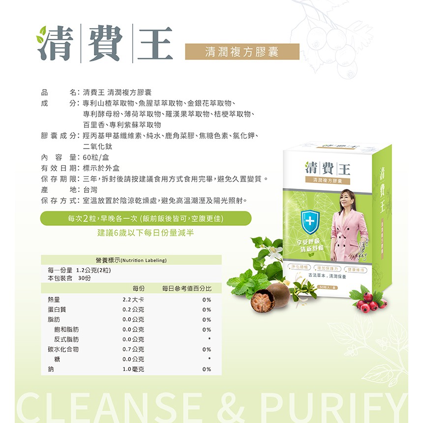 清費王 清潤複方膠囊 60顆/盒 張秀卿養氣代言 魚腥草 金銀花 羅漢果 紫蘇 原廠直營 官方供貨 現貨 廠商直送