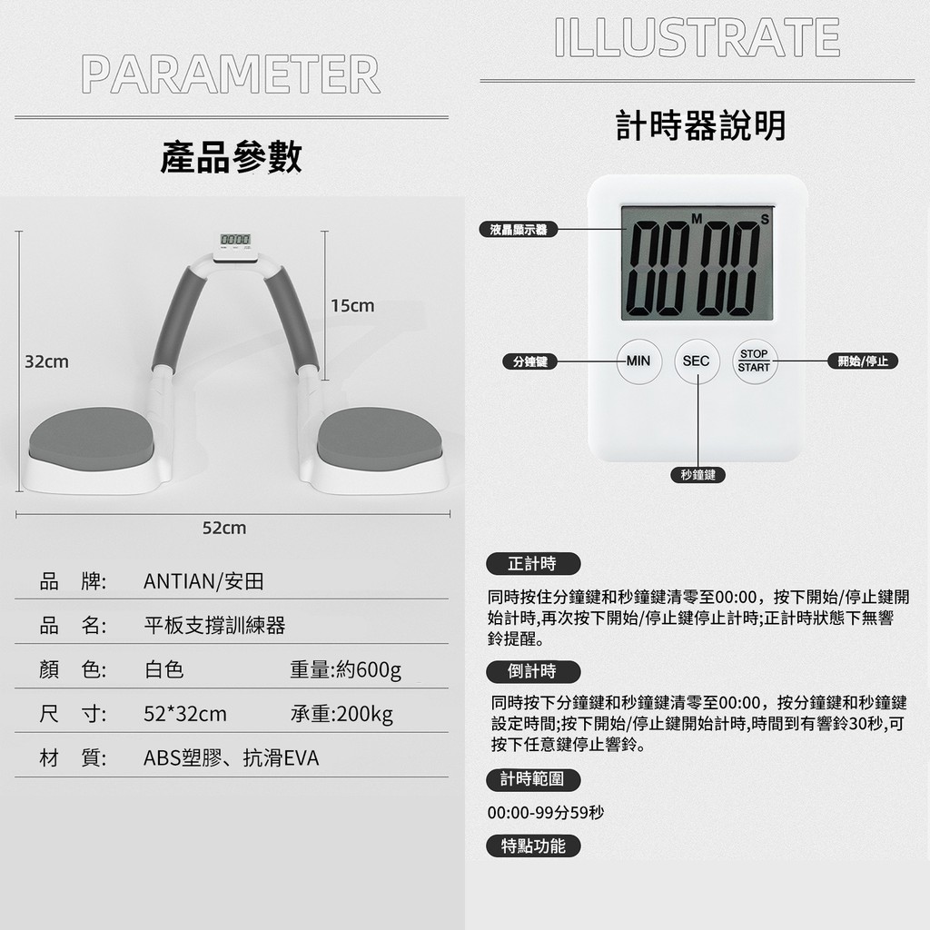 ANTIAN 多功能平板支撐計時訓練輔助器 伏地挺身器 練胸肌俯臥撐板 加厚肘墊 家用健身器材 現貨 蝦皮直送