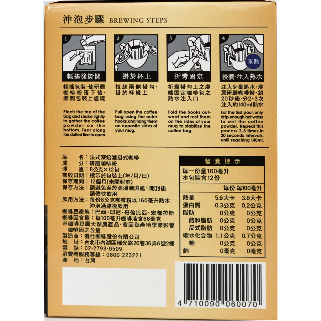 UCC 職人系列法式深焙濾掛式咖啡6盒組(8g x12入 共72入) 蝦皮直送