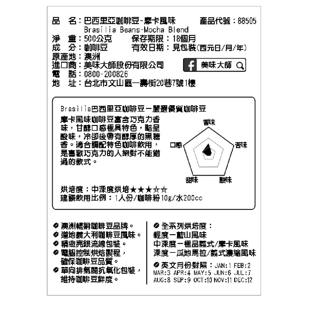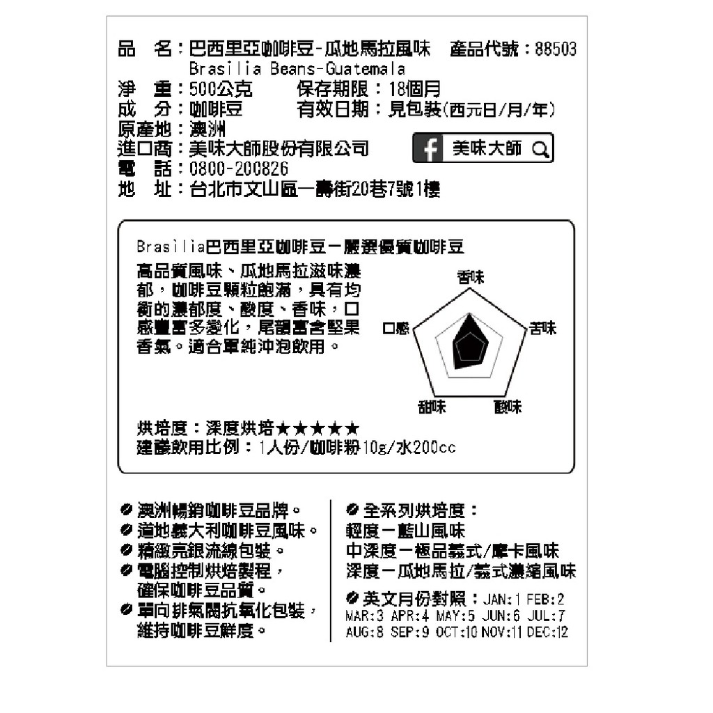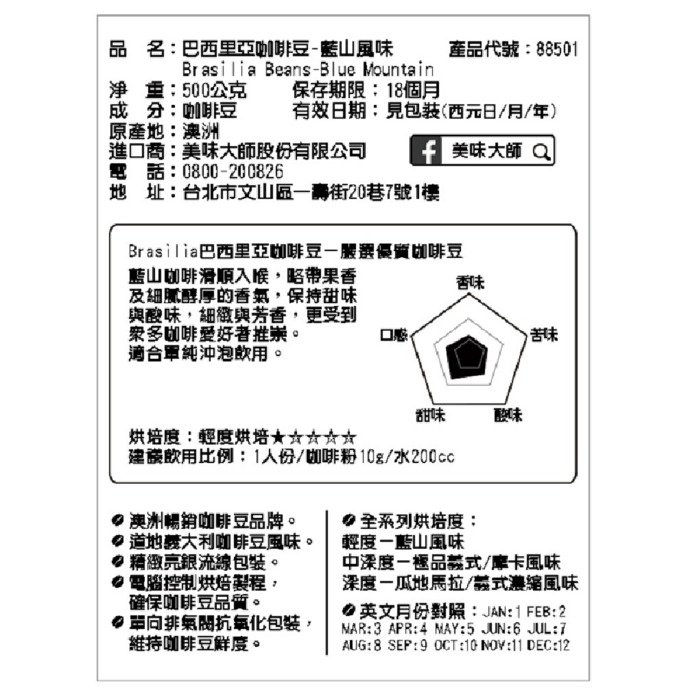 美味大師 巴西里亞咖啡豆 藍山/ 極品義式/瓜地馬拉/義式濃縮/摩卡 500g 現貨 蝦皮直送