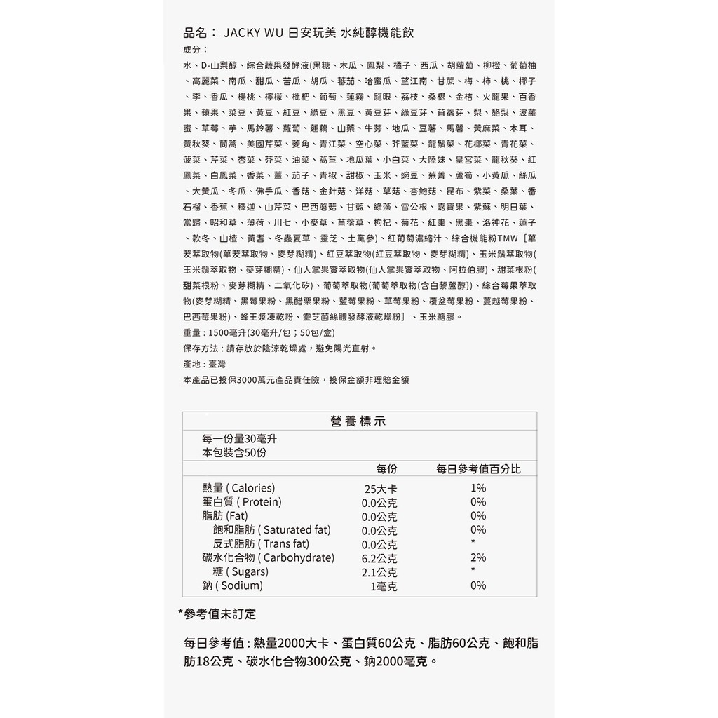 JackyWu 日安玩美 水純醇機能飲 50包/盒 現貨 廠商直送
