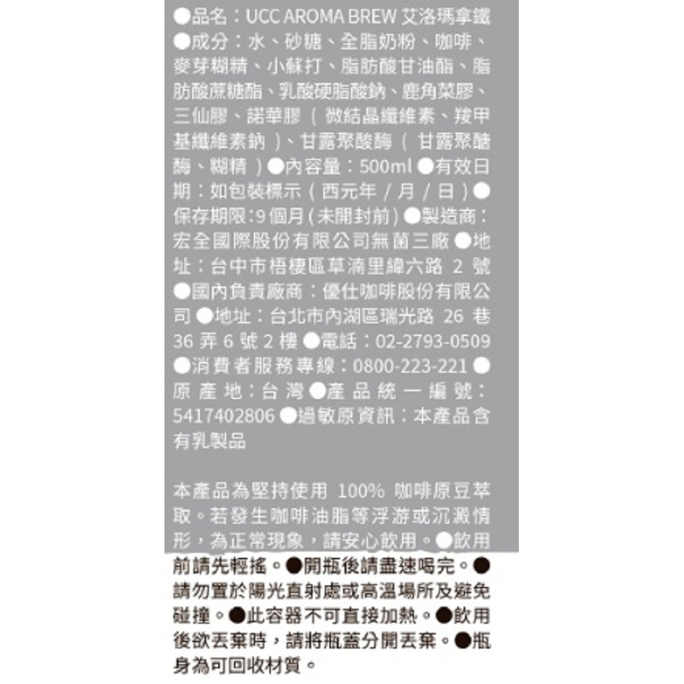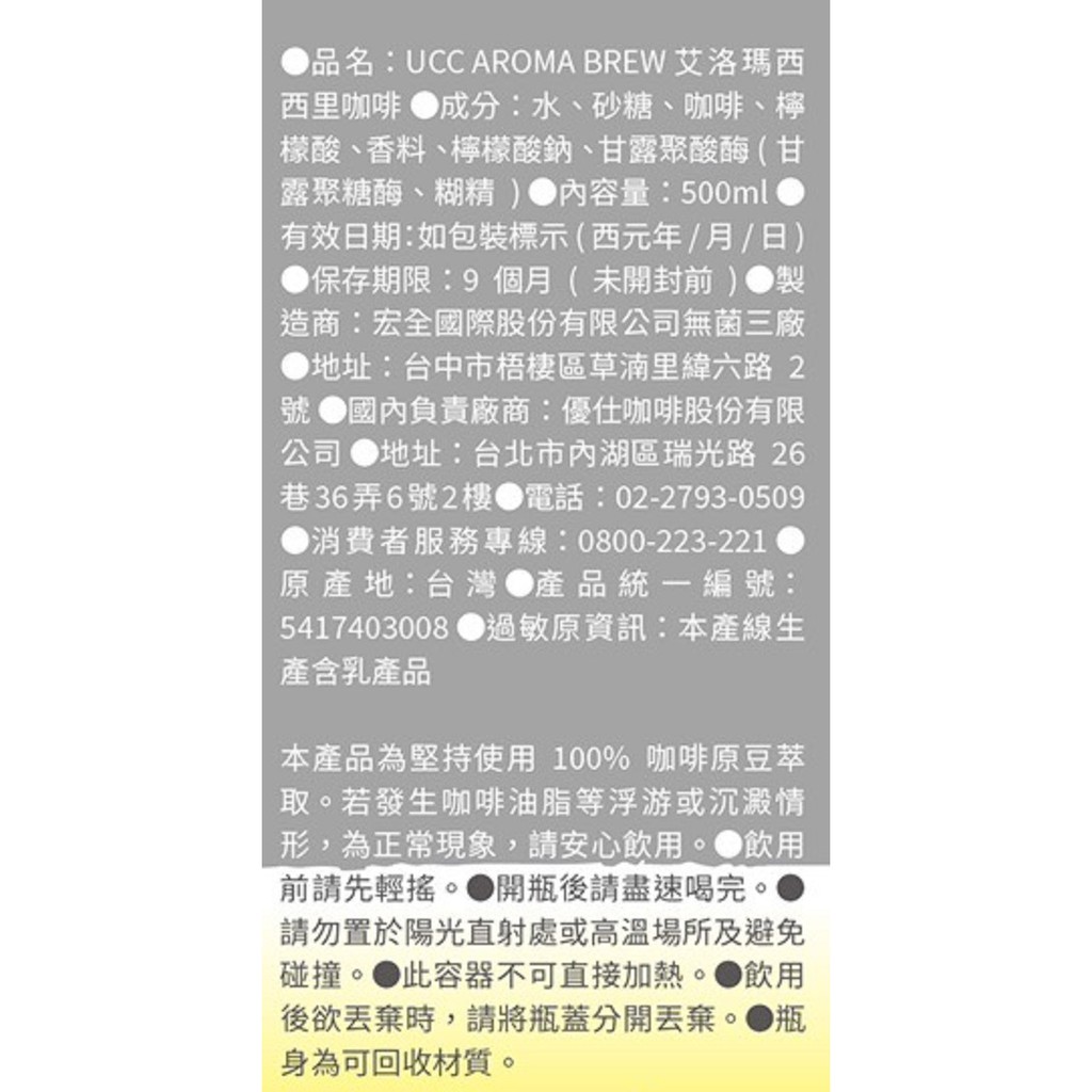 UCC AROMA BREW艾洛瑪 黑咖啡/拿鐵/西西里(500mlx24入)