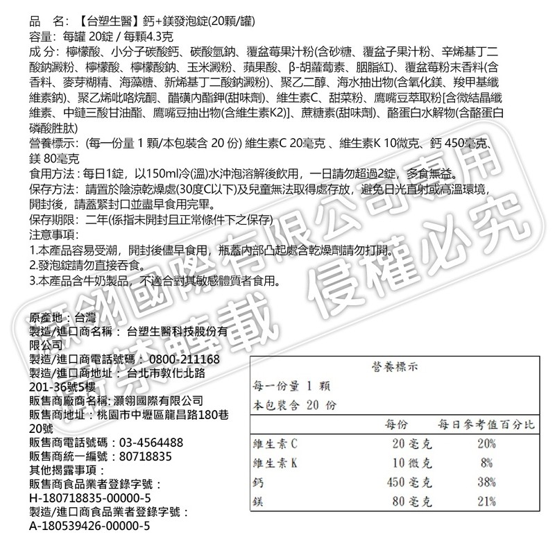 台塑生醫 鈣+鎂發泡錠 20顆/罐 3罐/5罐 多入任選 免運費 現貨 廠商直送