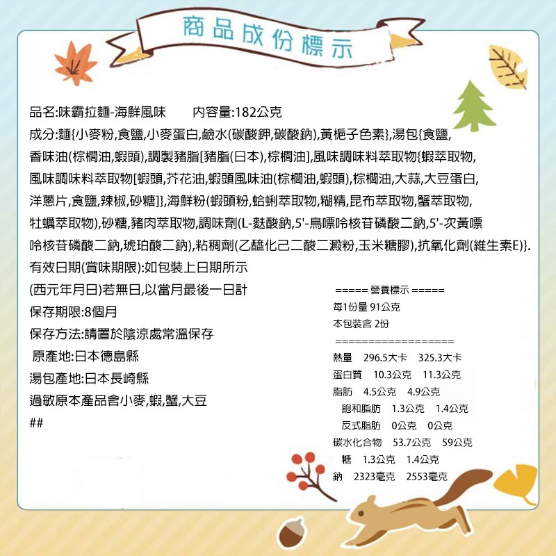 日本 岡本製麵 味霸拉麵/海鮮風味 (182g) 現貨 蝦皮直送