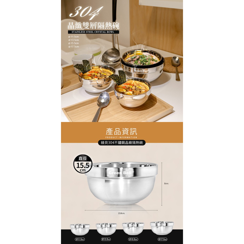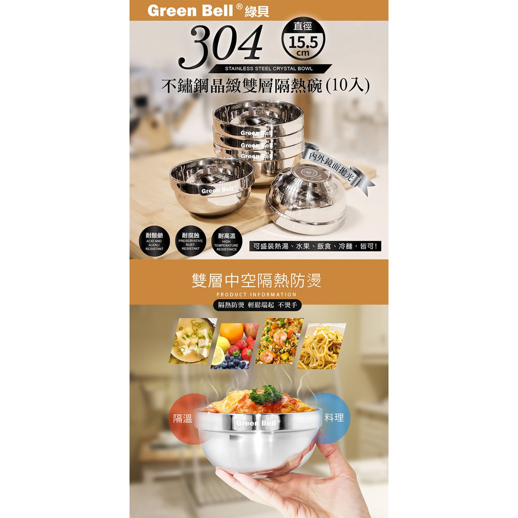 GREEN BELL 綠貝 304不鏽鋼精緻雙層隔熱碗15.5cm(10入) 現貨 廠商直送