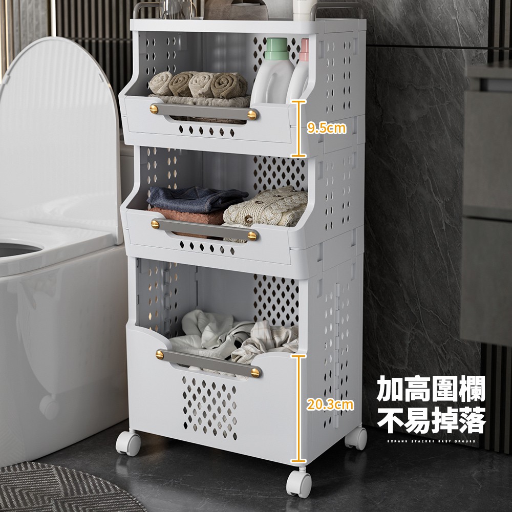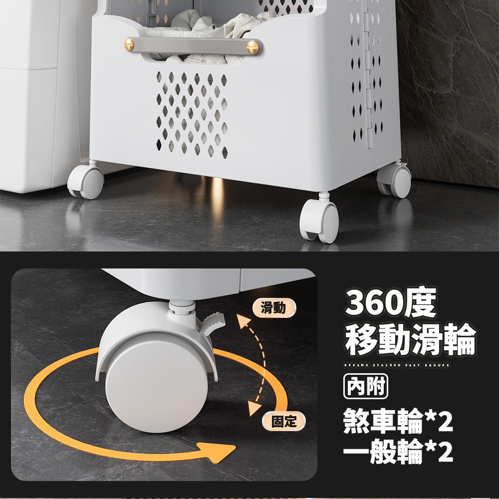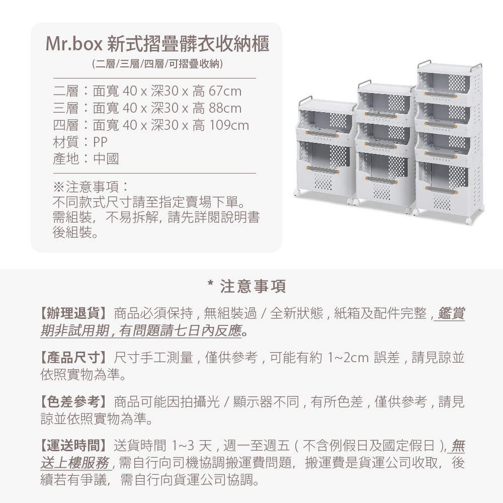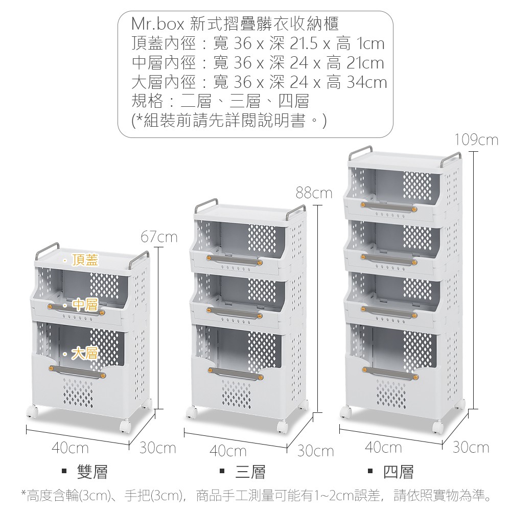 Mr.box-新式摺疊洗衣籃-附輪 2層/3層/4層 廠商直送