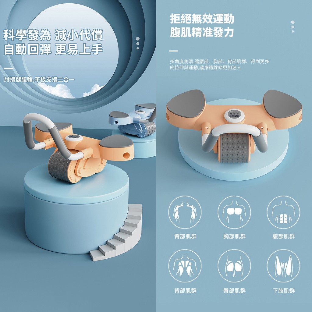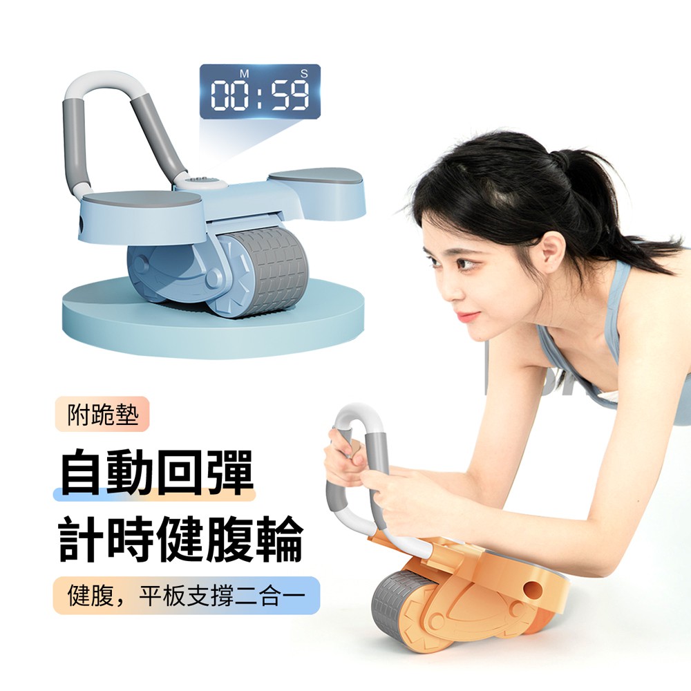 ANTIAN 二合一 計時自動回彈健腹輪 平板支撐輔助器 馬甲線腹肌訓練器 附跪墊 現貨 蝦皮直送