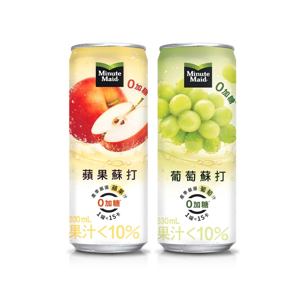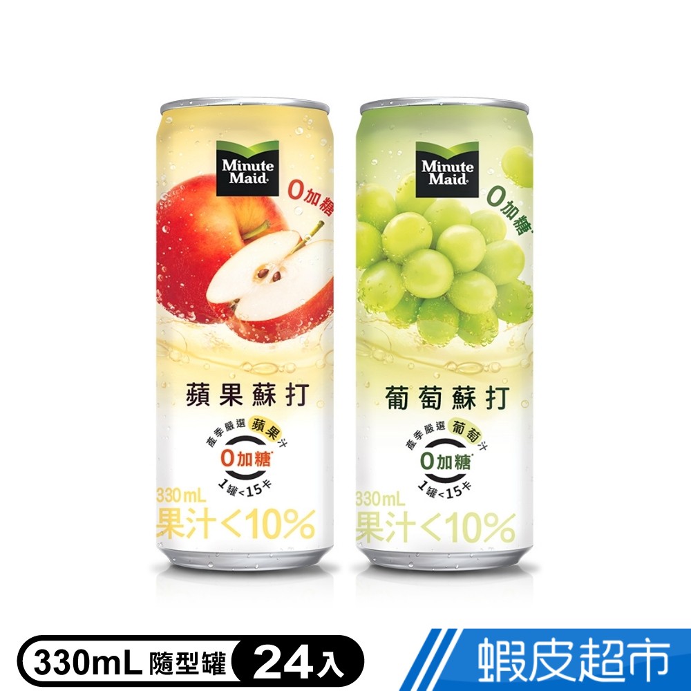 Minute Maid 美粒果 零加糖系列 蘋果蘇打/葡萄蘇打 隨型罐330ml (24入/箱) 現貨 蝦皮直送