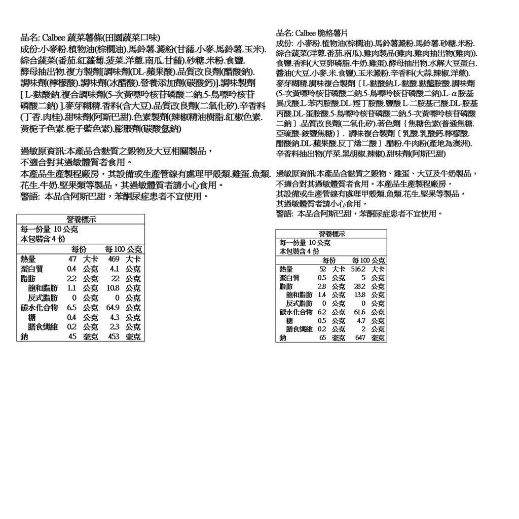 Calbee卡樂比 蔬菜薯條(田園蔬菜口味)/脆格薯片(10gX4入/串) 現貨 蝦皮直送