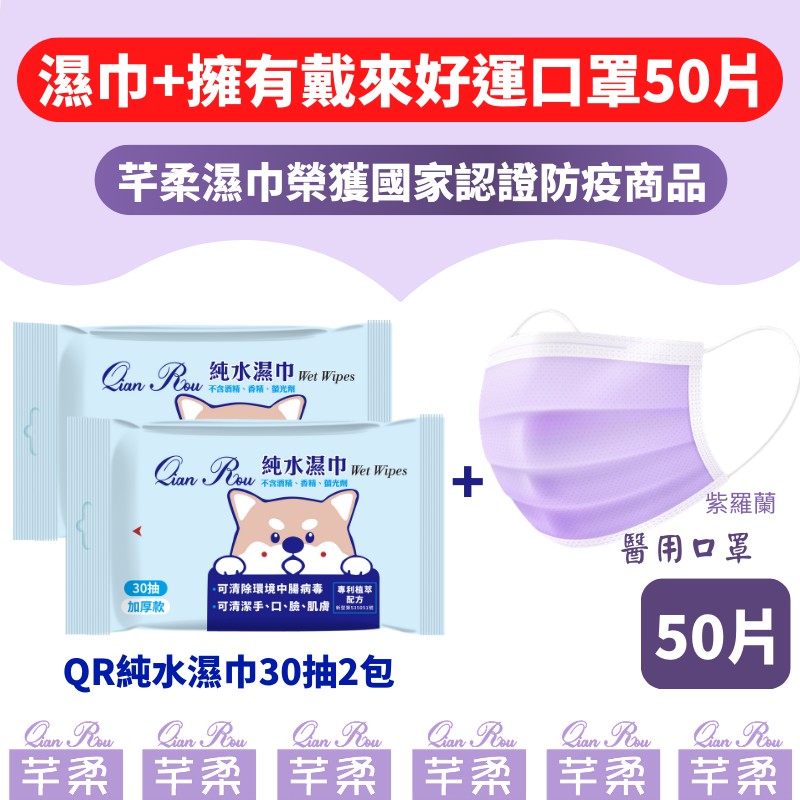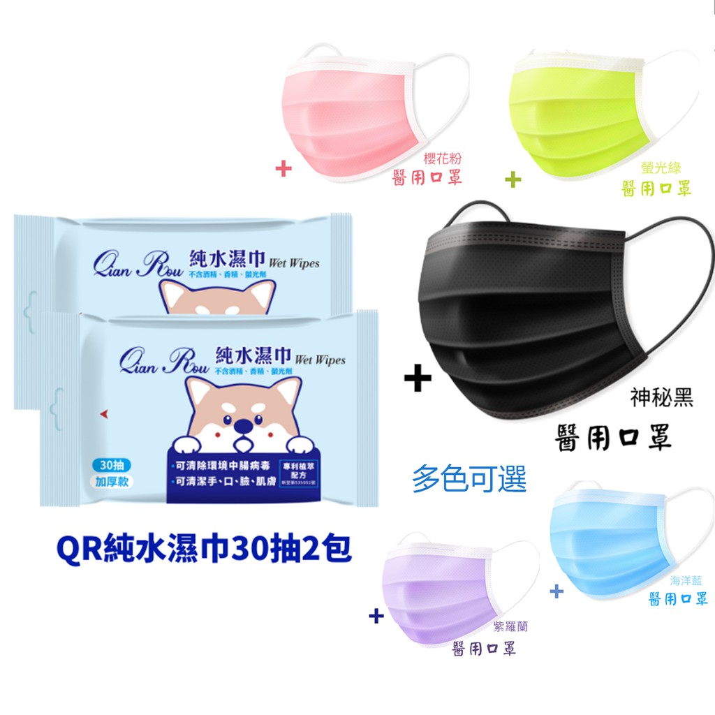 星安 QR純水濕紙巾30抽2包+50入成人醫療口罩櫻花粉/神秘黑/紫羅蘭/海洋藍/螢光綠 蝦皮直送 現貨