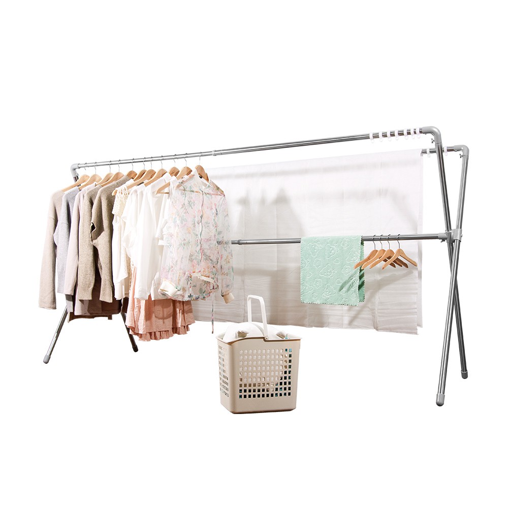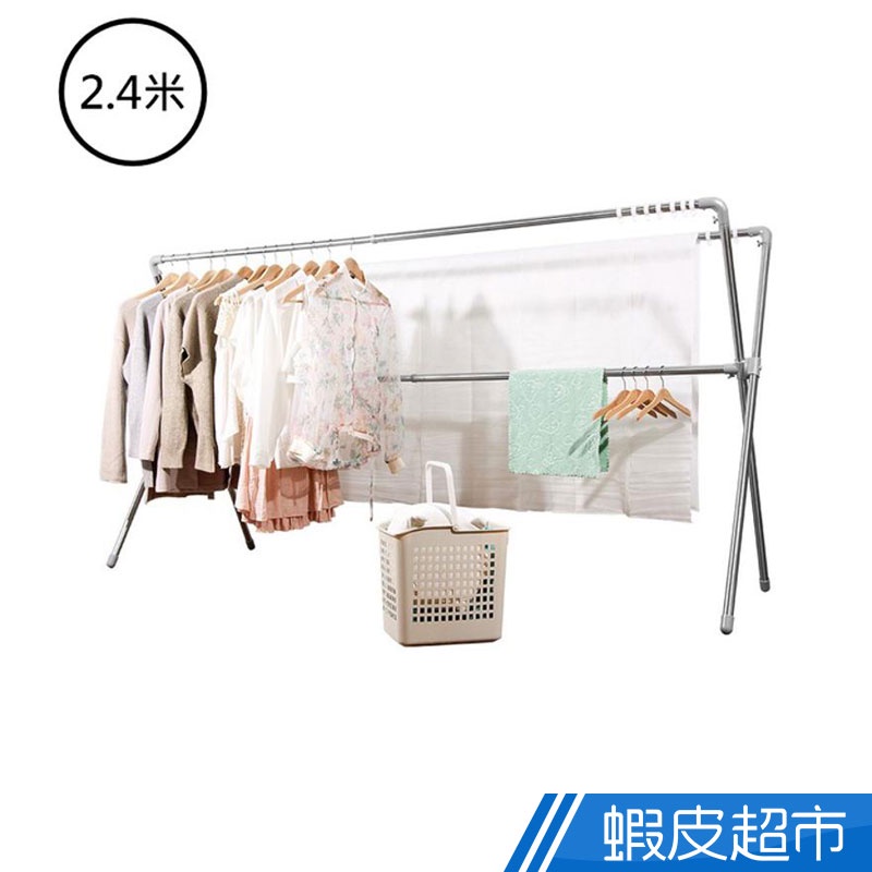 晴天媽咪 304不鏽鋼加長2.4M全鋁合金配件X型伸縮曬衣架 (贈10個防風掛勾) 晾曬 收納 廠商直送