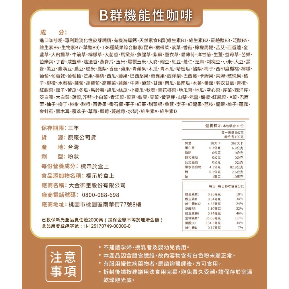 宏醫生技 百大酵素 B群 機能性咖啡 10入/盒 蔬果酵素+維他命B+D+A+海藻鈣 現貨 公司貨 正貨 蝦皮直送