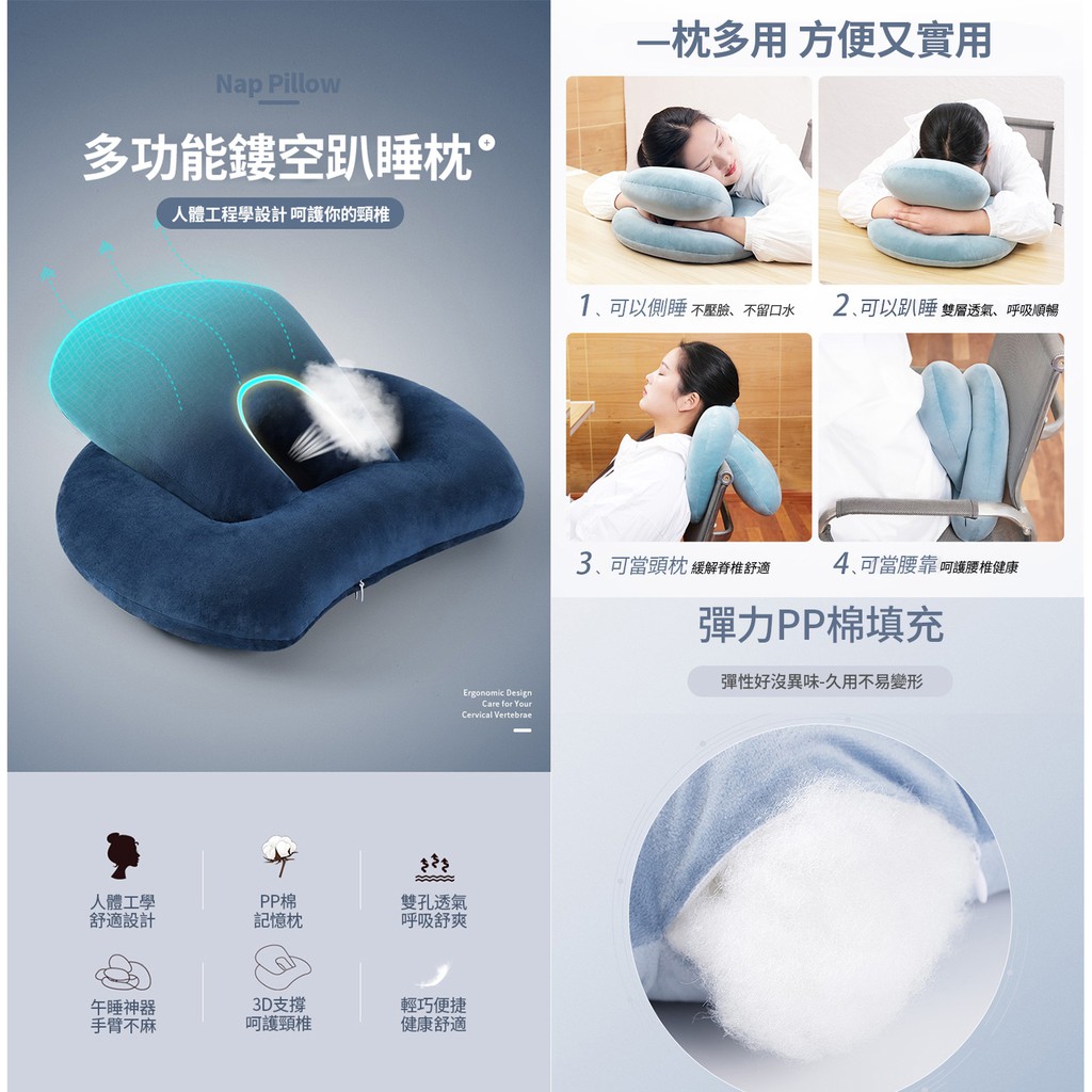 ANTIAN 辦公室多功能鏤空午睡枕 午休趴睡枕頭 趴趴枕 柔軟舒適 天鵝絨防手麻趴睡枕 午睡神器 休閒 蝦皮直送 現貨