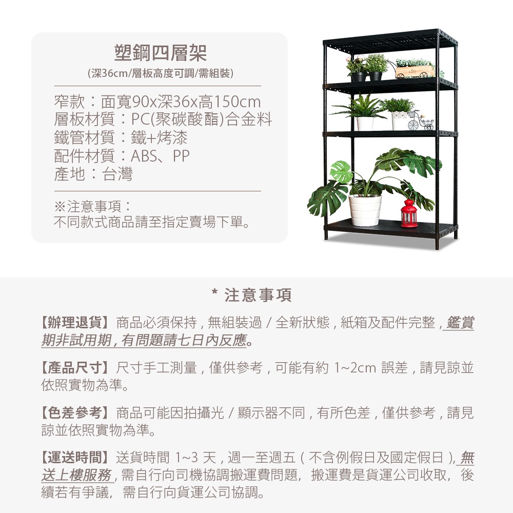 晴天媽咪 塑鋼多功能四層置物架 (寬90x深36x高150cm) 層架 置物架 收納 免運費 廠商直送