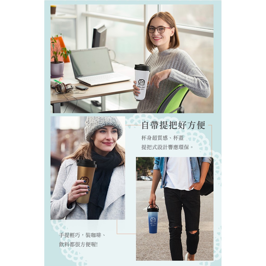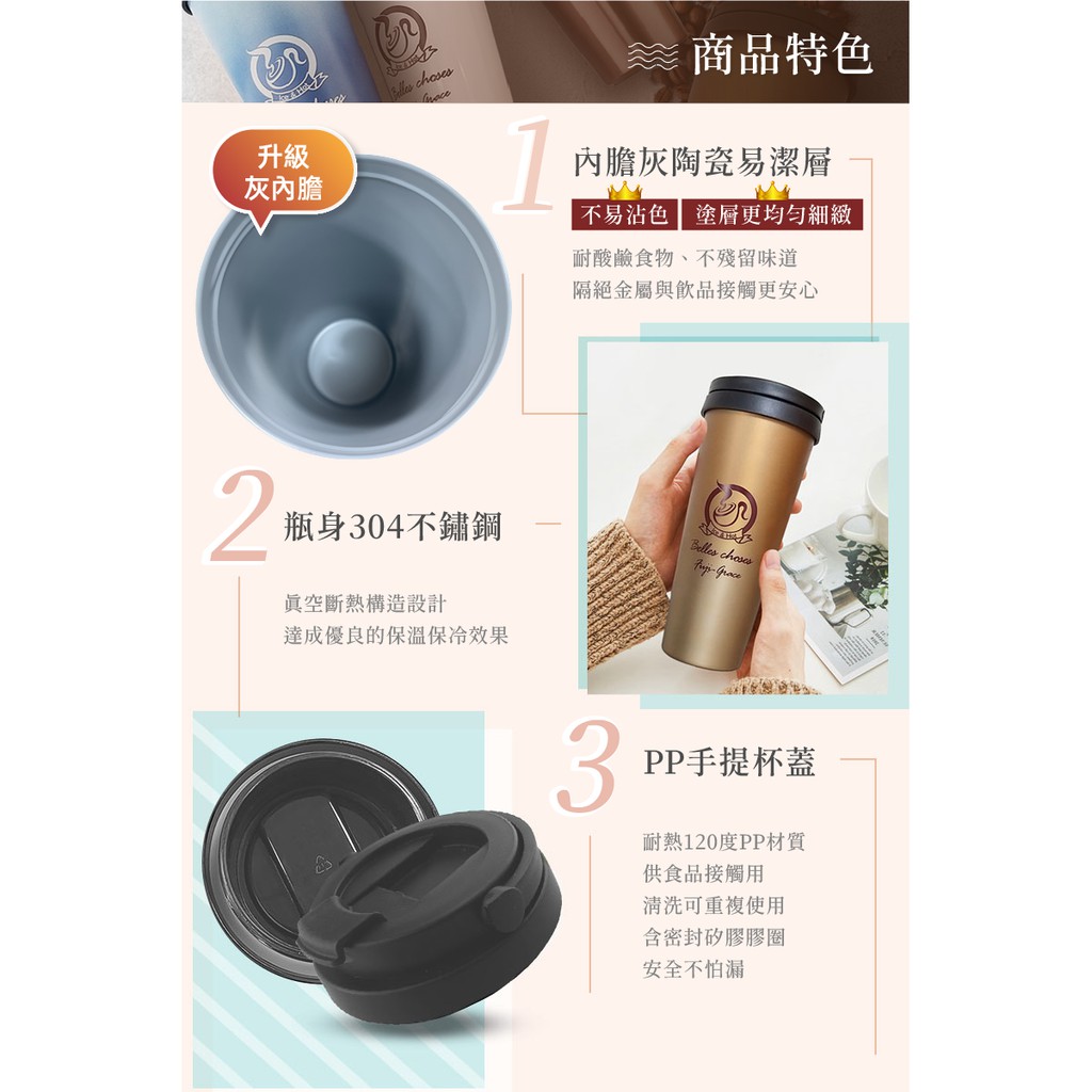 日本FUJI-GRACE 外鋼內陶瓷 手提 保溫咖啡杯 600ml 寬口 保溫杯 隨身杯 免運 現貨 廠商直送