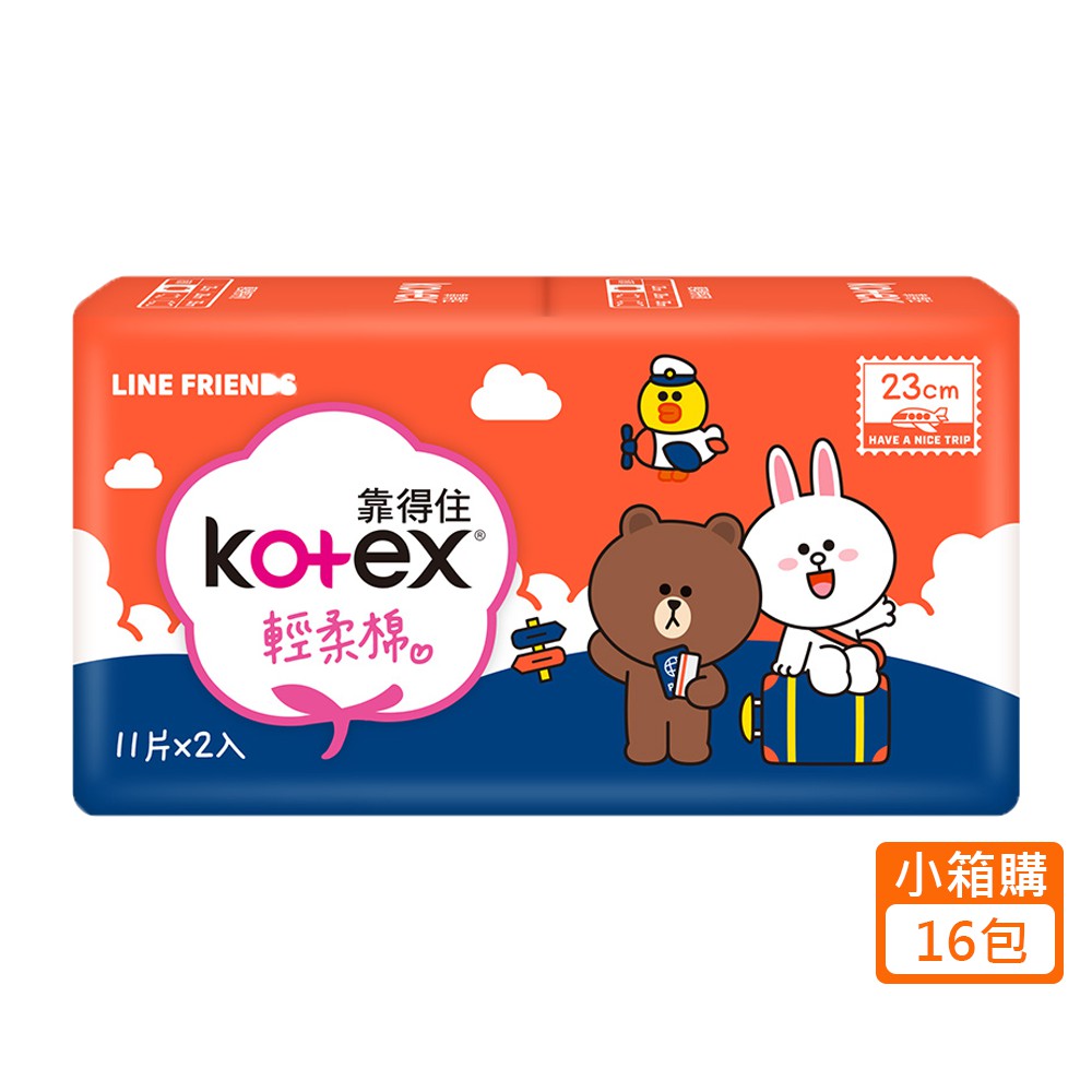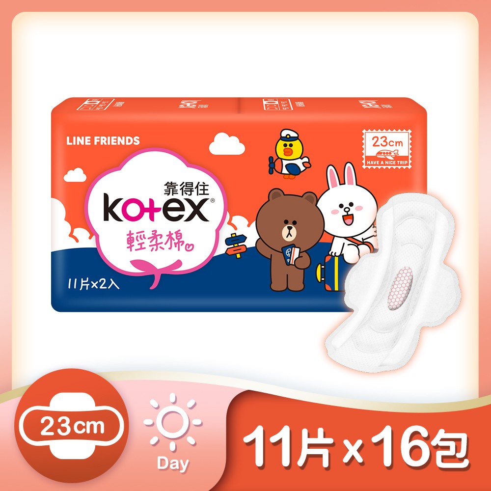 Kotex靠得住 輕柔棉衛生棉小箱購-日用23cm 11片x16包 熊大兔兔限定包裝 蝦皮直送 現貨