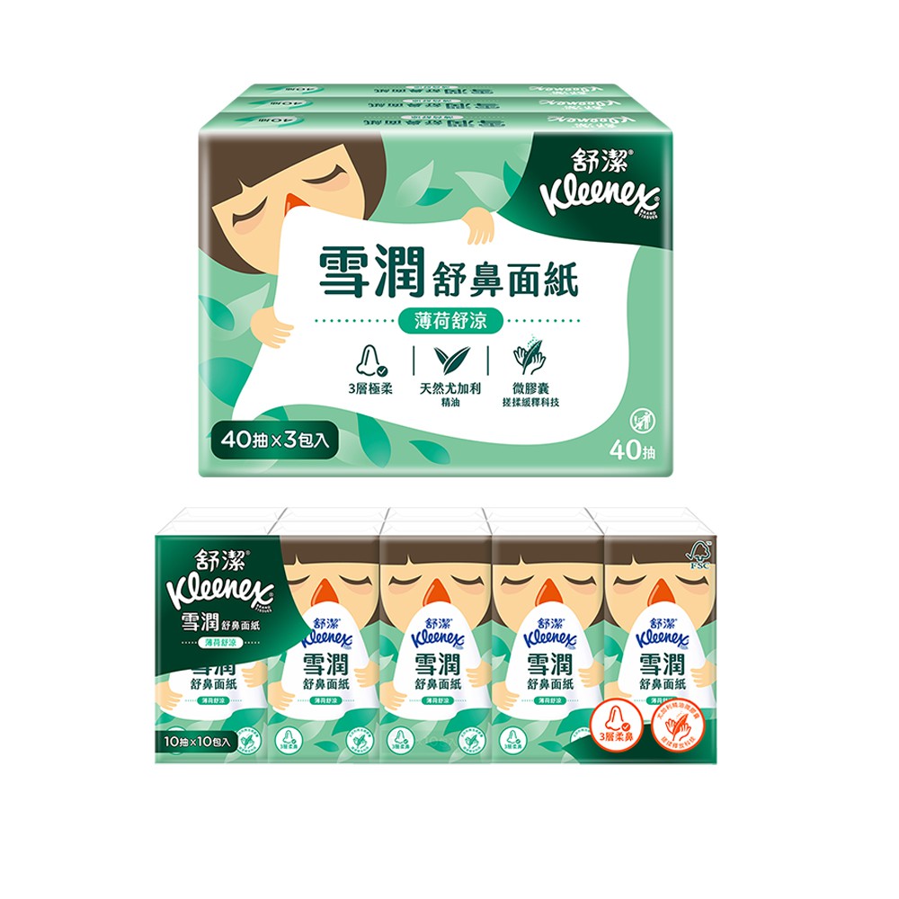 舒潔 雪潤舒鼻(紙手帕/面紙重量包) -薄荷舒涼 蝦皮直送 現貨