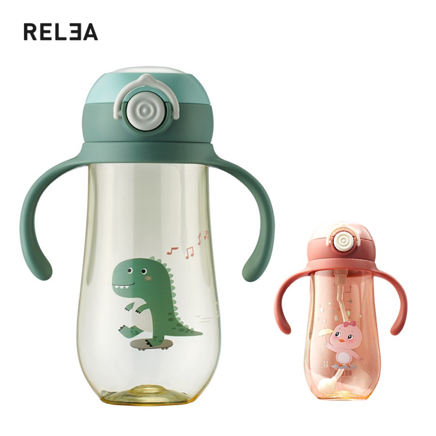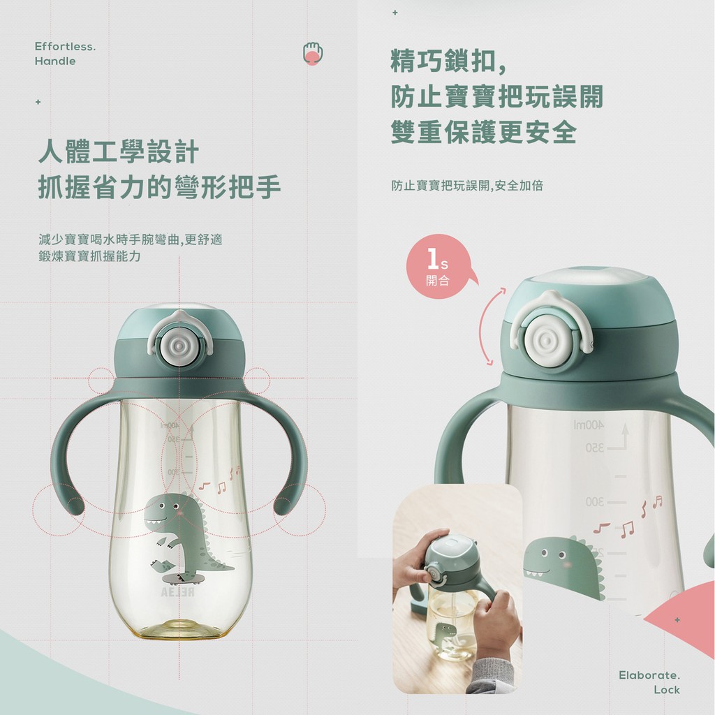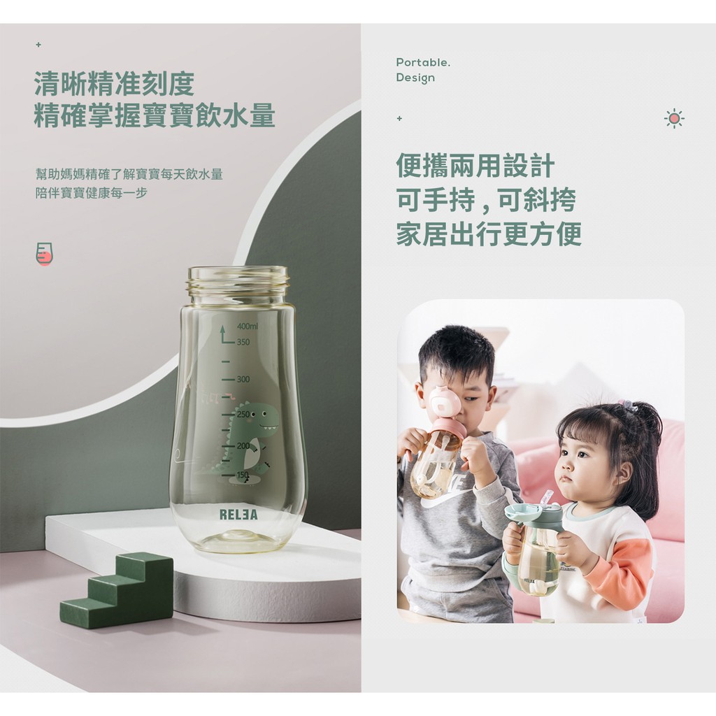 可愛卡通兒童水瓶 美國進口Tritan材質 寶寶學飲吸管水杯 防漏便攜戶外背帶水壺 450ml 粉色 蝦皮直送 現貨
