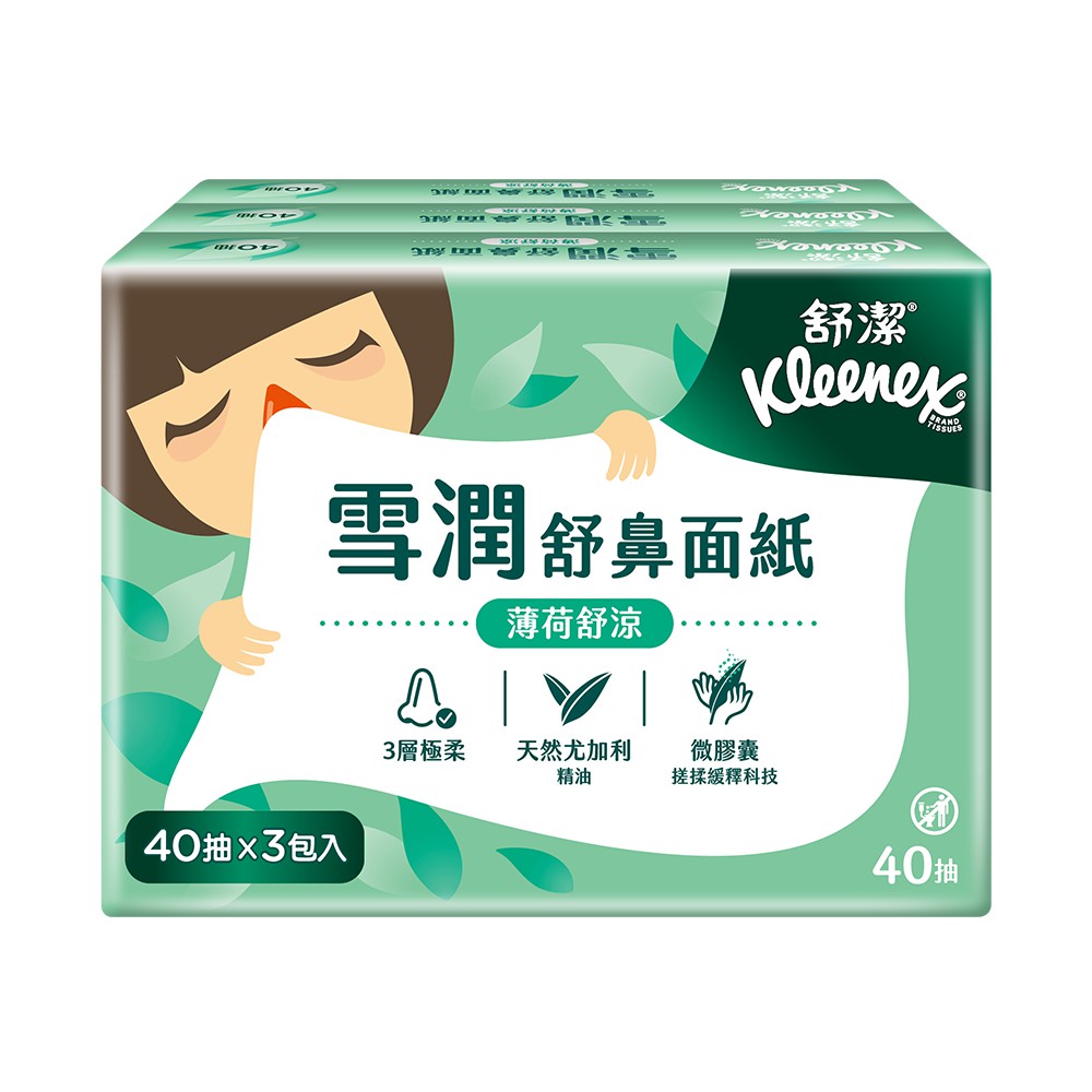 舒潔 雪潤舒鼻面紙重量包 -薄荷舒涼 40抽x3包/串 蝦皮直送 現貨