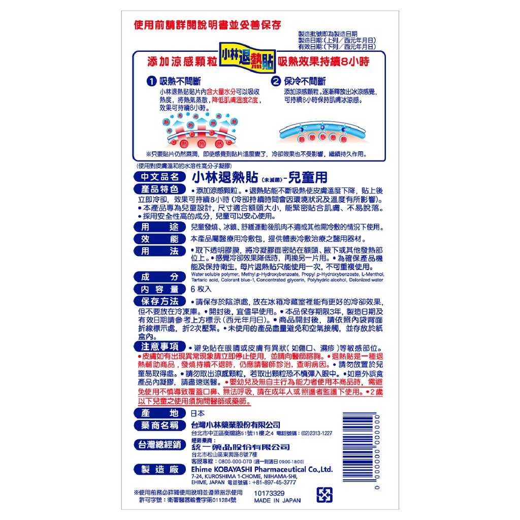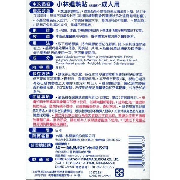 小林製藥 小林退熱貼 6枚/盒 4盒組 任選成人用/兒童用/嬰兒用 現貨 廠商直送