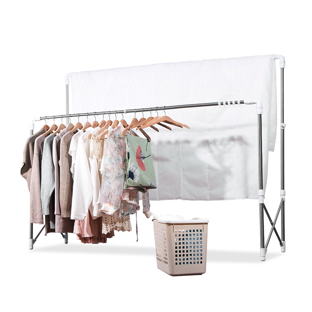 晴天媽咪 不鏽鋼ㄇ型伸縮曬衣架 1.8M (贈10個防風掛勾) 晾曬 收納 廠商直送