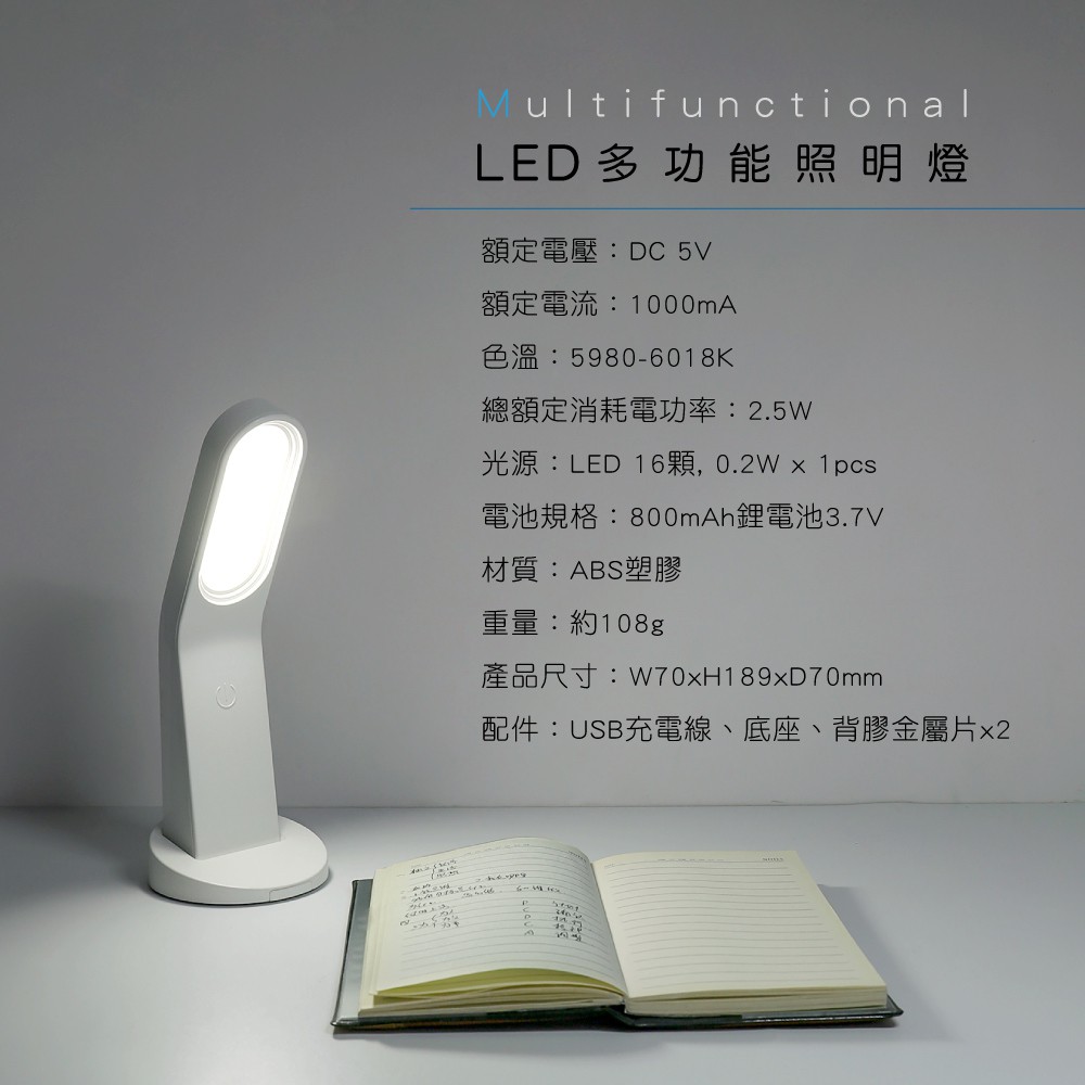 KINYO LED多功能照明燈 白色 粉色 四合一多功能照明 手電筒 檯燈 磁吸式 LED-6530 廠商直送
