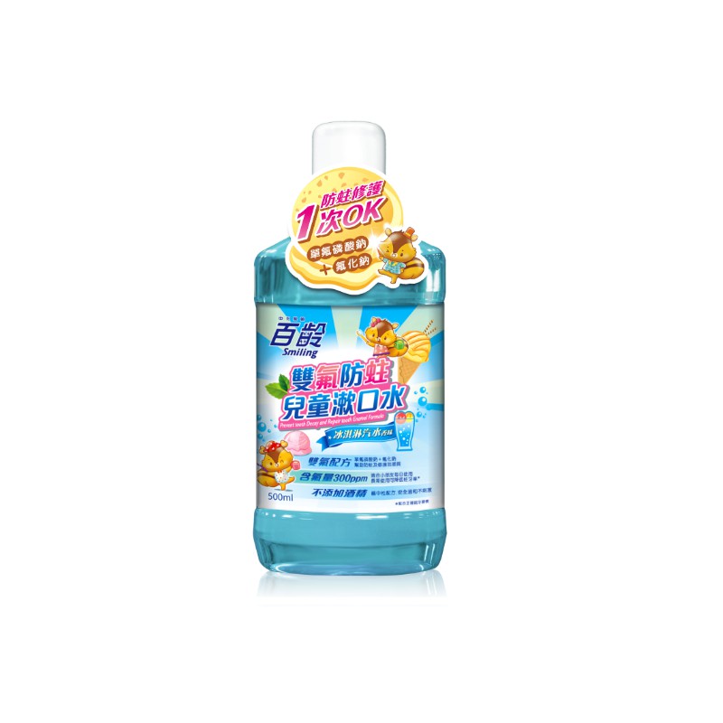 百齡 Smiling 雙氟防蛀兒童漱口水 500ml 冰淇淋汽水香味 無酒精 現貨 蝦皮直送