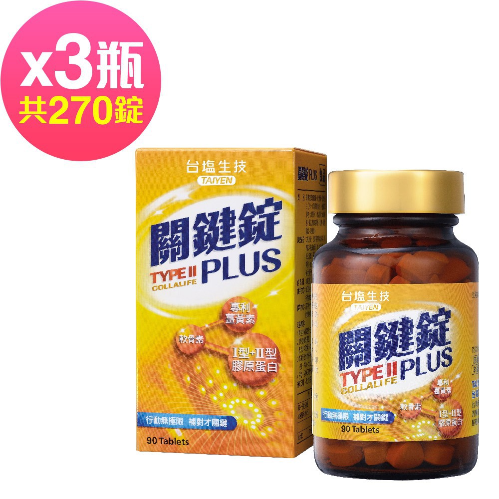 台鹽生技 關鍵錠PLUS 90顆/瓶 薑黃素+軟骨素+膠原蛋白+維他命C+胡椒鹼 行動無極限 現貨 廠商直送