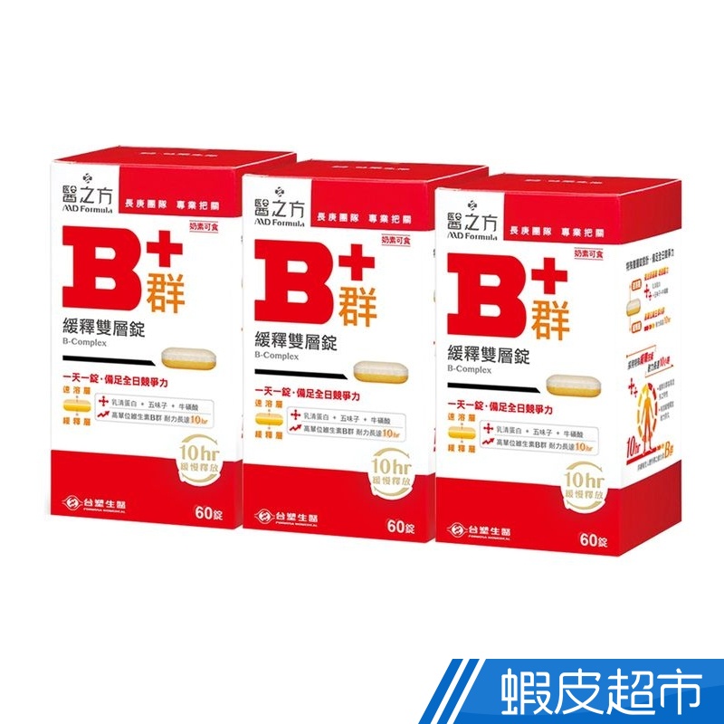 台塑生醫 緩釋B群雙層錠 3瓶組 60錠/瓶x3瓶 維他命 B群 10hr緩慢釋放 台塑 醫之方 免運 現貨 廠商直送