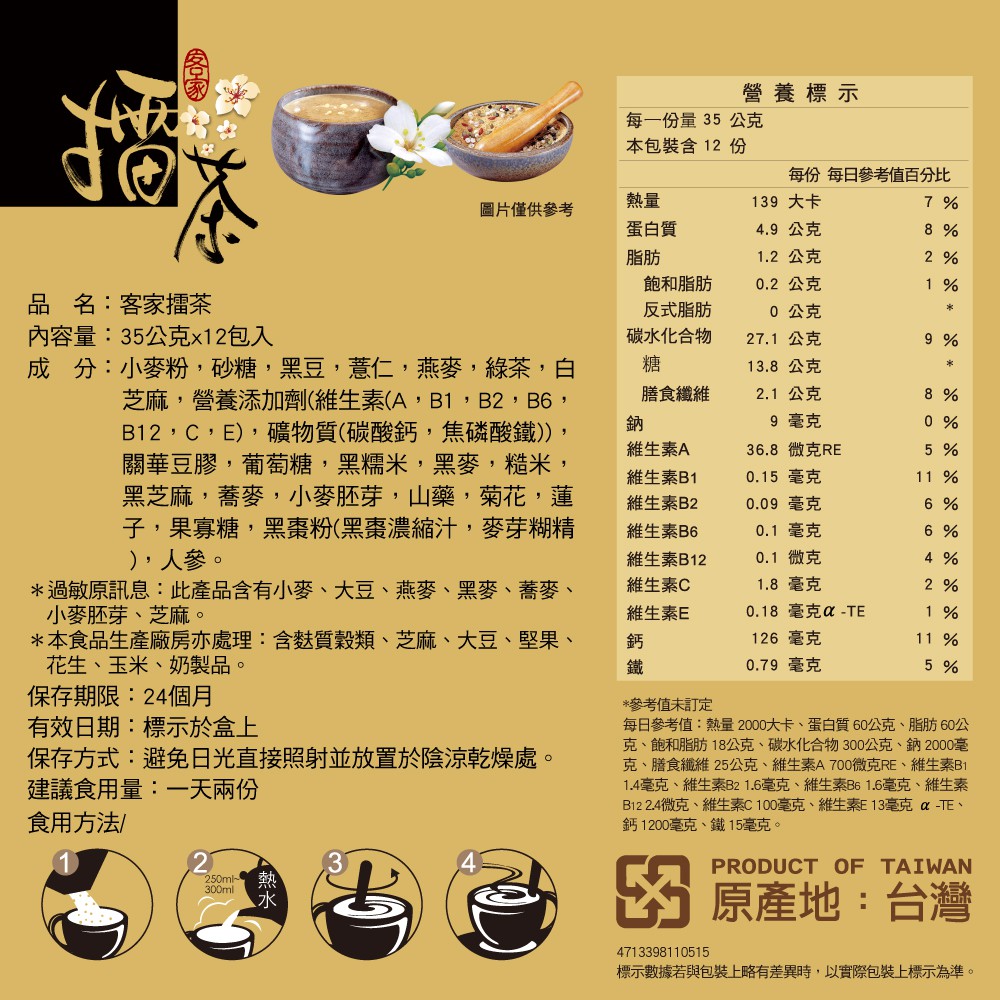 馬玉山 客家擂茶(35g×12入) 禮盒組 現貨 全天然 冷熱沖泡 高纖高鈣 現貨 蝦皮直送