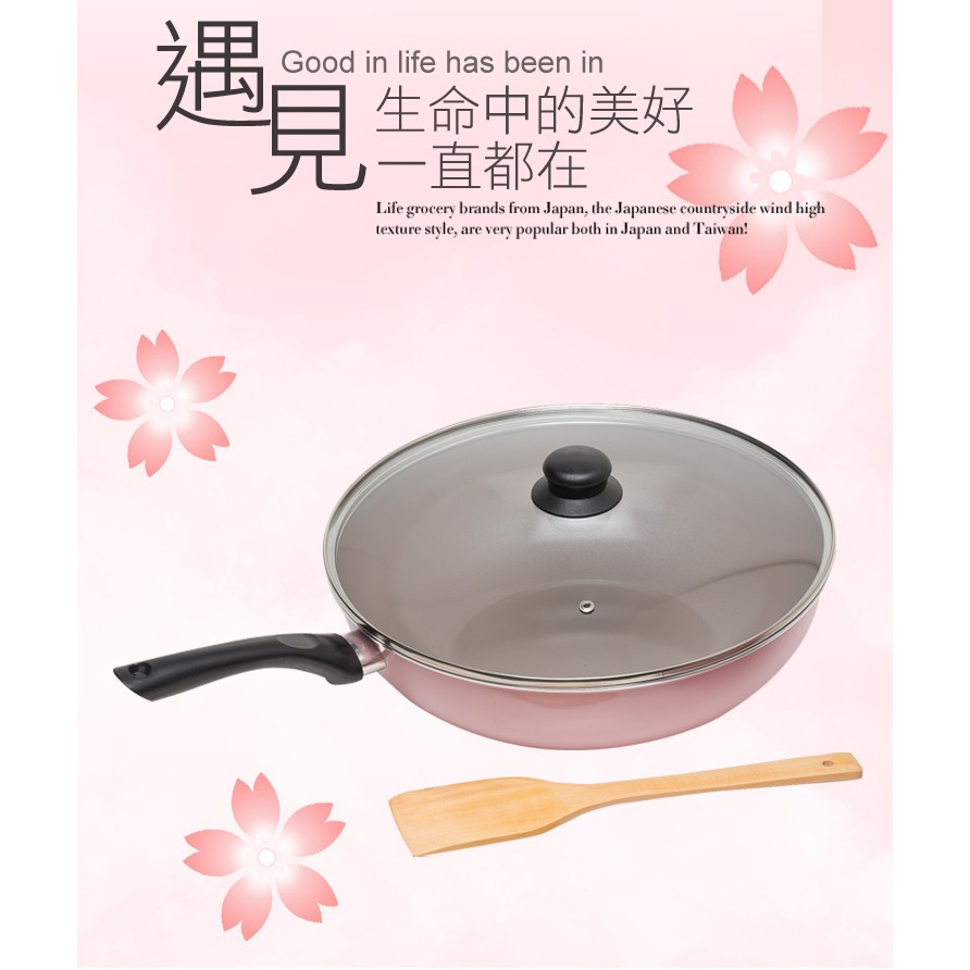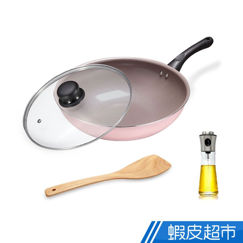 義大利mama cook 綻粉陶瓷不沾鍋具4件組(30cm炒鍋+蓋+鏟+l噴油瓶) 現貨 廠商直送