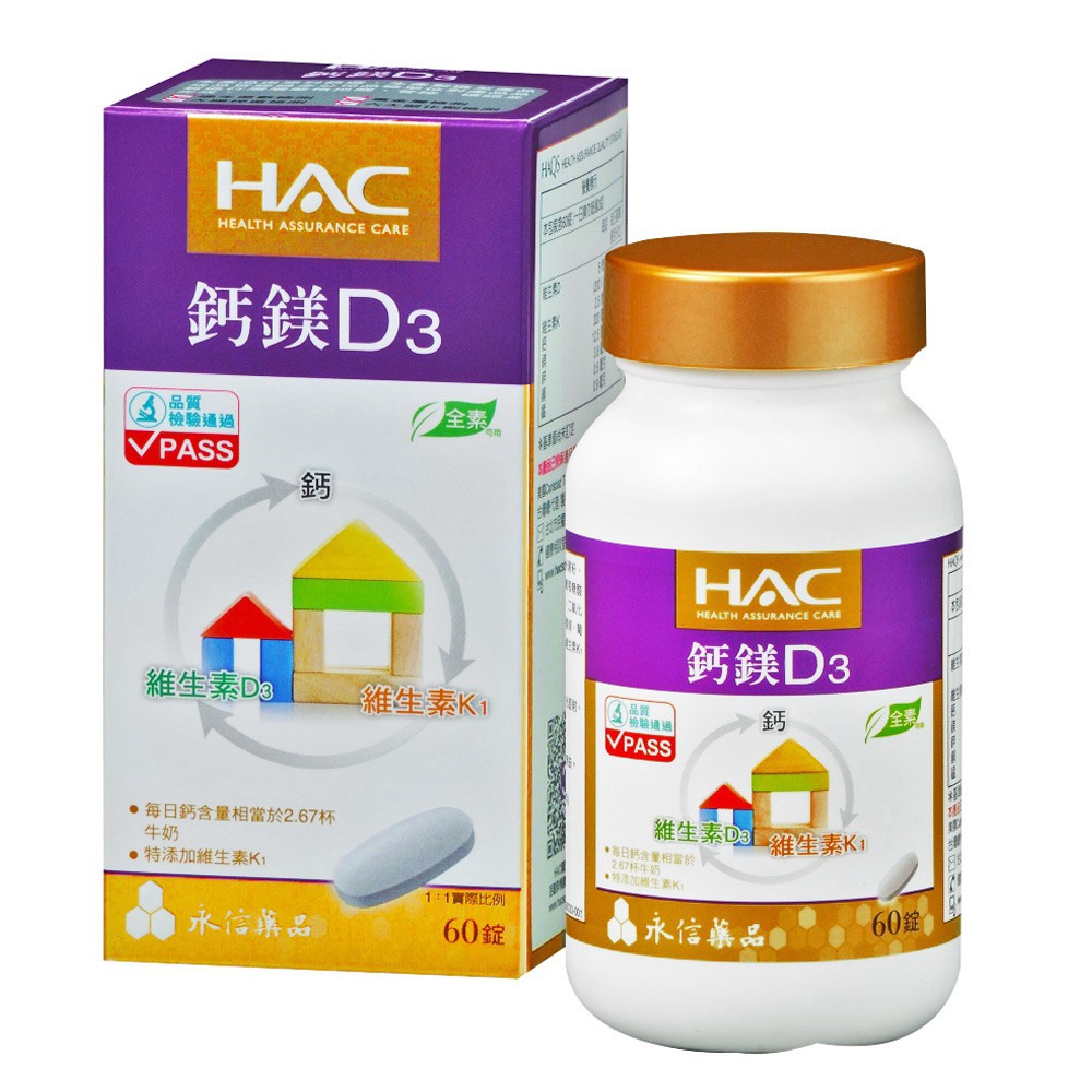 永信HAC 鈣鎂D3 綜合錠 60錠/瓶 單瓶/3瓶組 全素可食 現貨 廠商直送