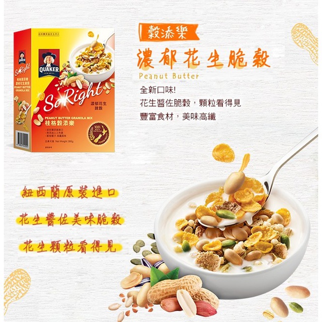 桂格 穀添樂系列 濃郁花生/綜合堅果/7種果莓/榛果可可/黑醋栗莓果/奇異果脆穀 300g/袋 全新口味 蝦皮直送