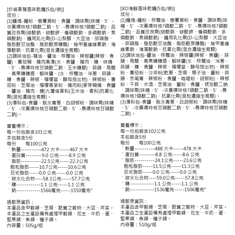 味丹 449乾麵舖 XO海鮮風味乾麵/炒塔香豬風味乾麵 (5包/袋) 新品 現貨 蝦皮直送