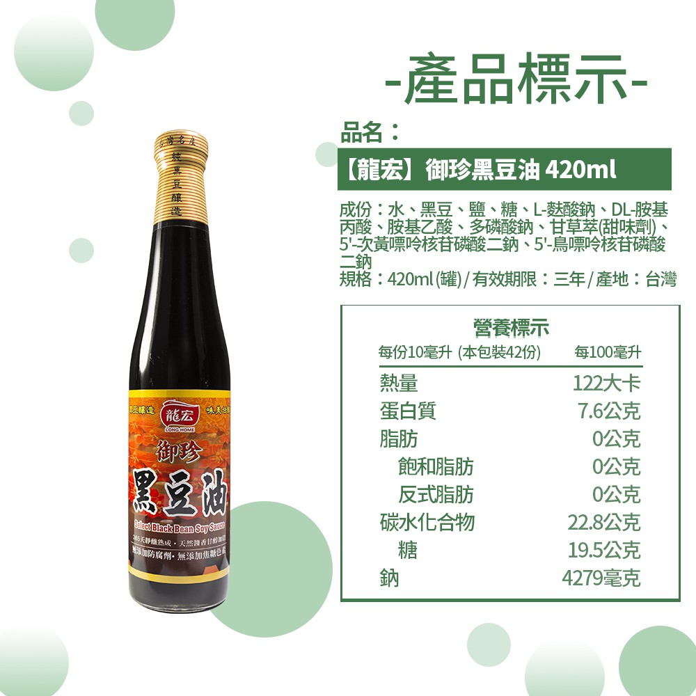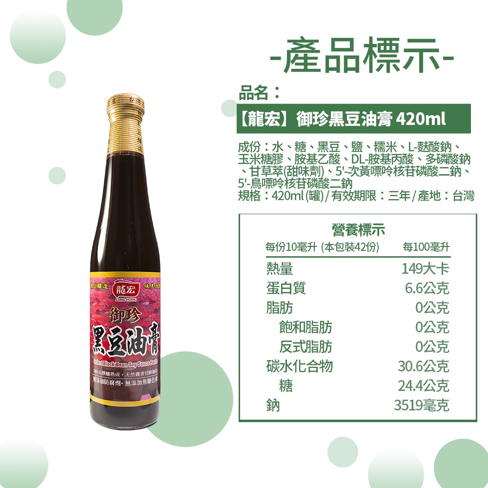 龍宏 御珍黑豆油膏/黑豆油/蒜蓉黑豆油膏/辣黑豆油膏 420ml 現貨 蝦皮直送