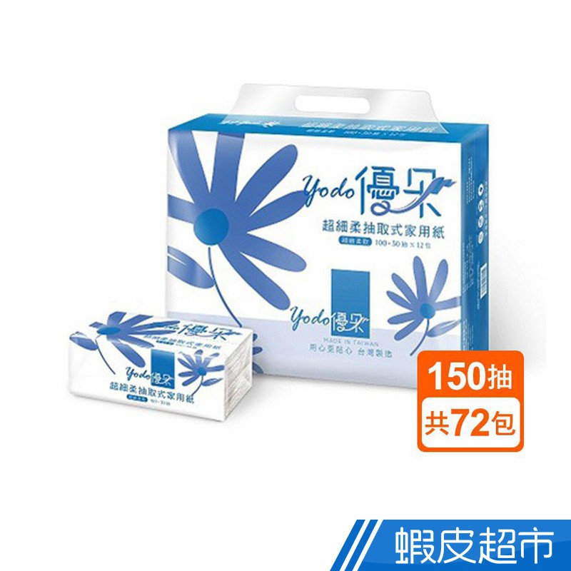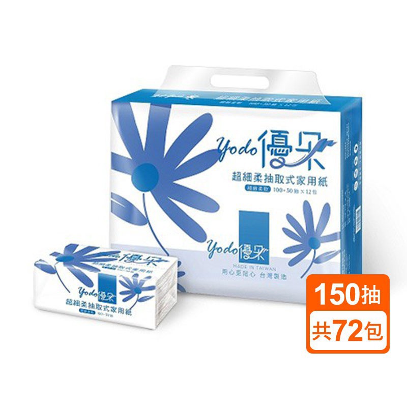Yodo優朵超細柔抽取式花紋家用紙150抽X12包X6串/箱(箱購) 廠商直送